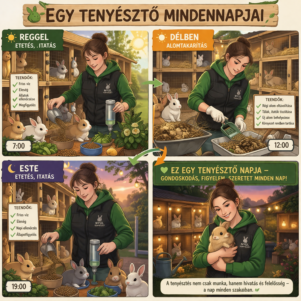 Egy tenyésztő napja nem akkor kezdődik, amikor éppen van idő rá – hanem akkor, amikor a nyusziknak szükségük van ránk.